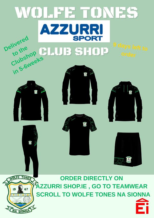 Looking to purchase some black Wolfe Tones na Sionna merchandise ? Go to Azzurri Sports where for the next few days you can order your favourites.